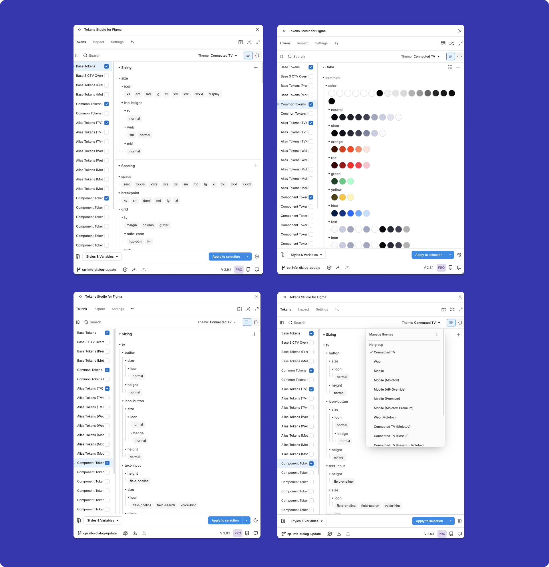 The goal of this project was to build a design system from the ground up for Fubo from scratch. We created components and layouts for all platforms—TV, mobile, and web—for the Fubo app, and tokenized those elements. This allows developers to easily update designs and ensures a consistent design system across all platforms.