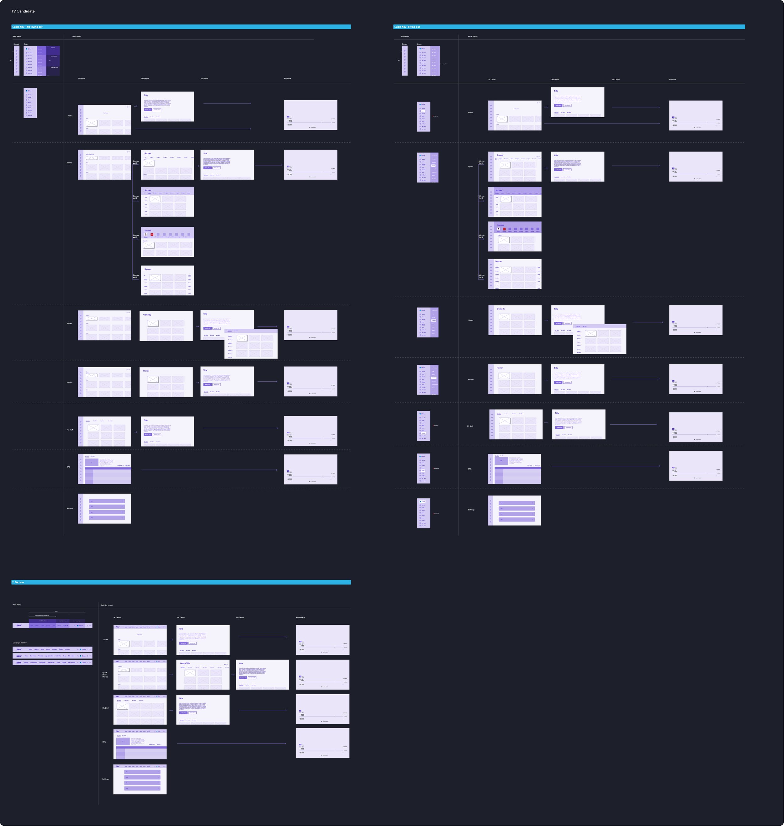 • Designed main and secondary navigation concepts for TV, mobile, and web platforms.